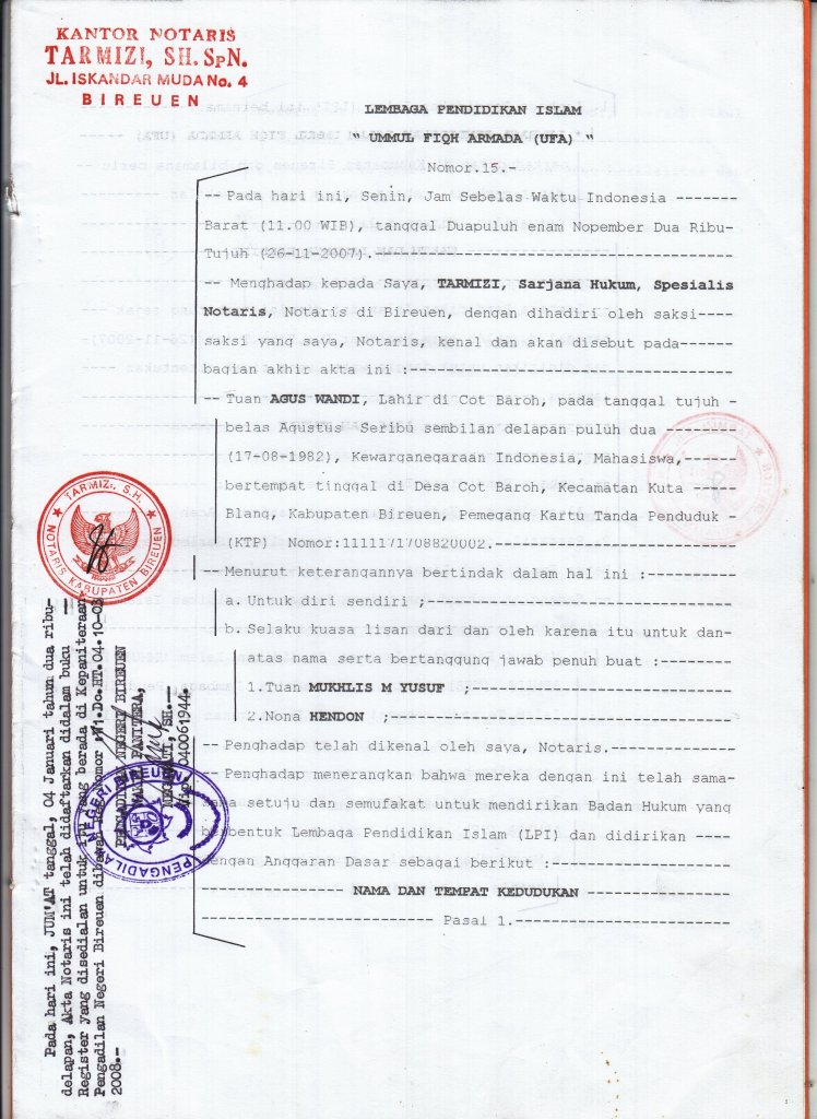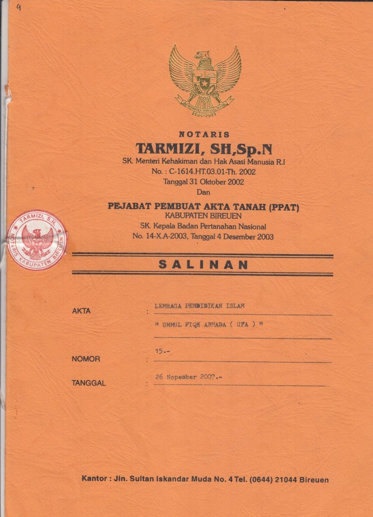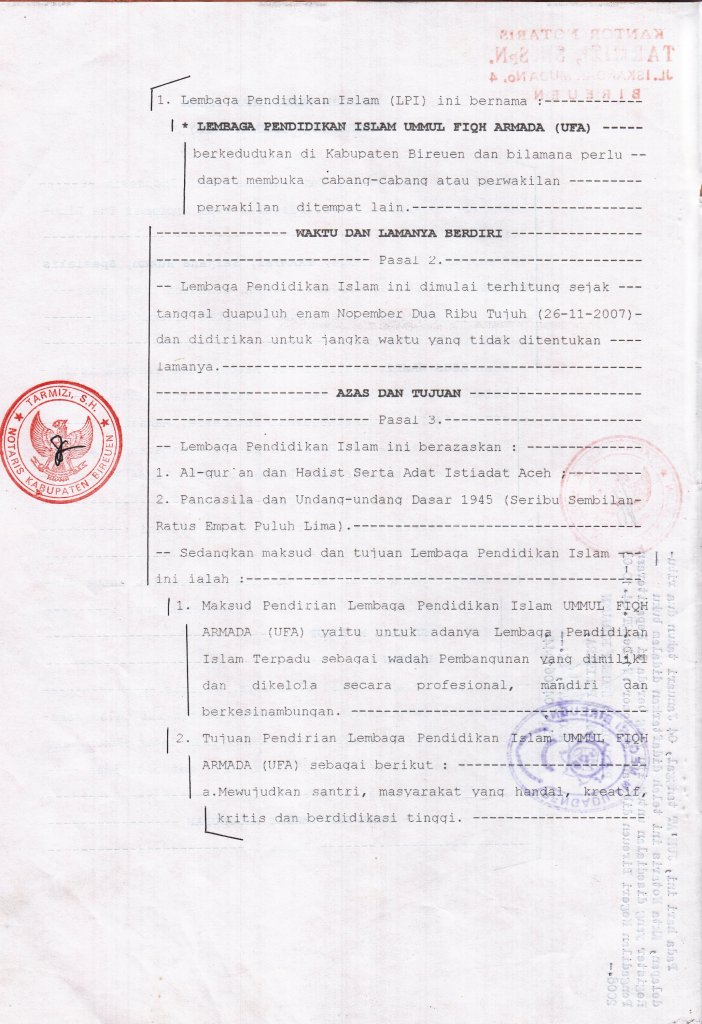 Legalitas dan Prestasi AKTA NOTARIS PENDIRIAN IZIN OPERASIONAL NPWP Pengesahan lembaga mitra REKOMENDASI DINAS SYARIAT ISLAM Surat keterangan TERDAFTAR PENGALAMAN PROGRAM UFAUnduh